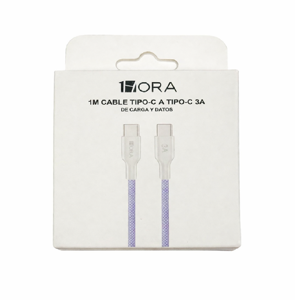 SKU: CAB272 1HORA 1M CABLE TIPO C A TIPO C 3A AZUL