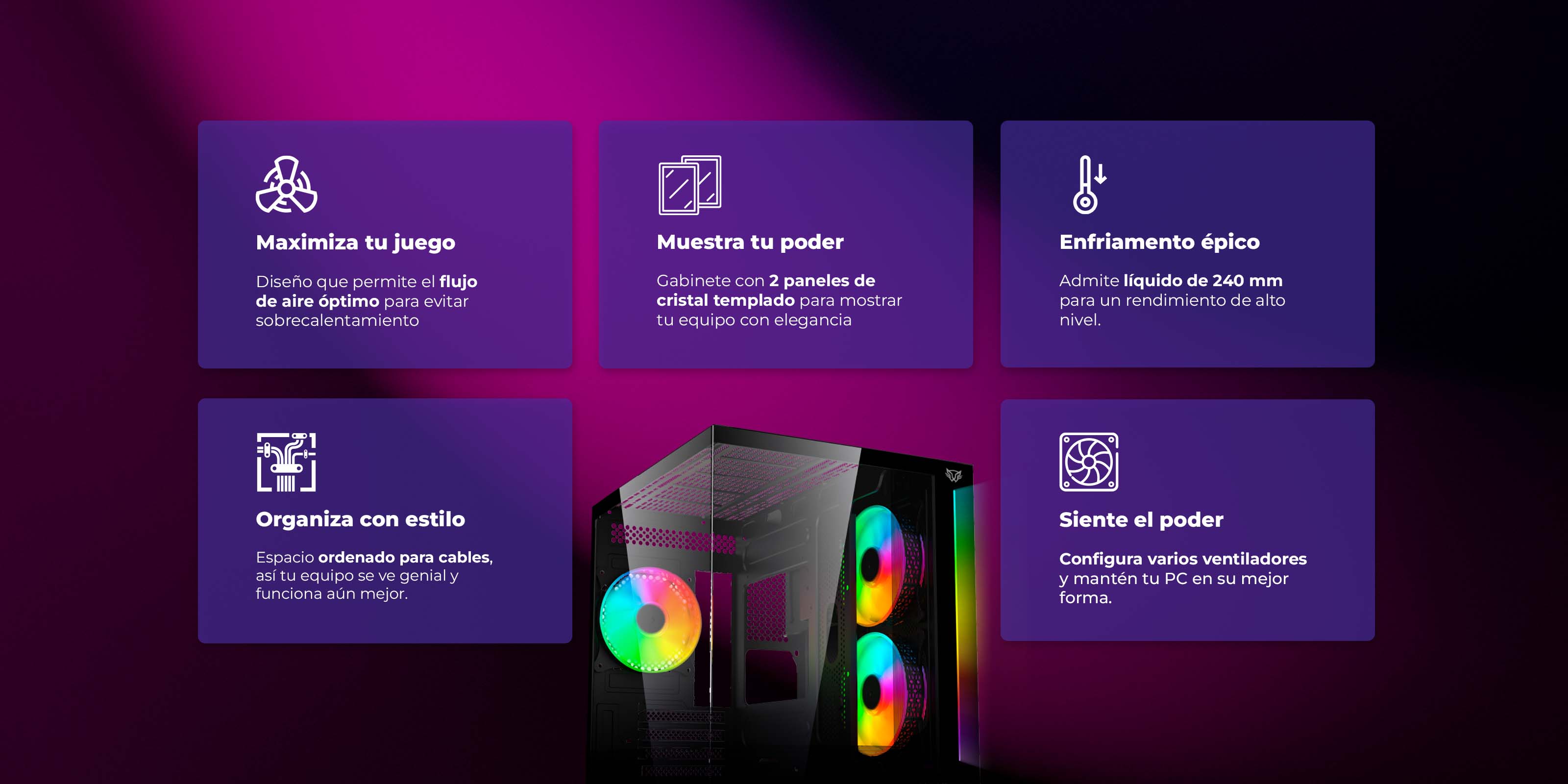 El Gabinete Gamer Media Torre Tank Pro Evo GM955 Legend Series en blanco te ofrece un flujo de aire optimizado y una refrigeración excepcional para mantener tus componentes funcionando a máxima potencia incluso durante las sesiones de juego más intensas.