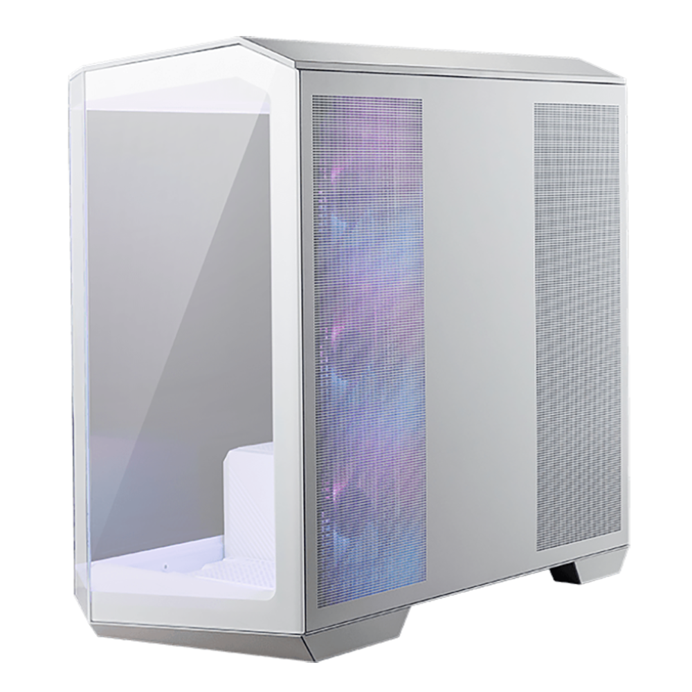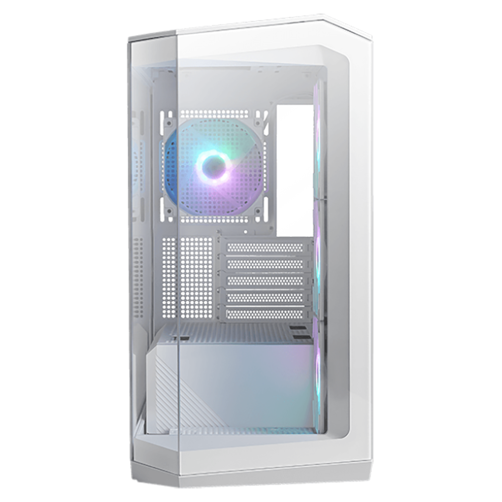 El MSI MAG PANO M100R PZ WHITE es un gabinete micro-tower de alto impacto visual para PC gaming y sistemas con iluminación ARGB, diseñado para quienes buscan estética y rendimiento térmico sin complicaciones. Cuenta con una vista panorámica de vidrio templado 270°, que muestra todos tus componentes con claridad y estilo.