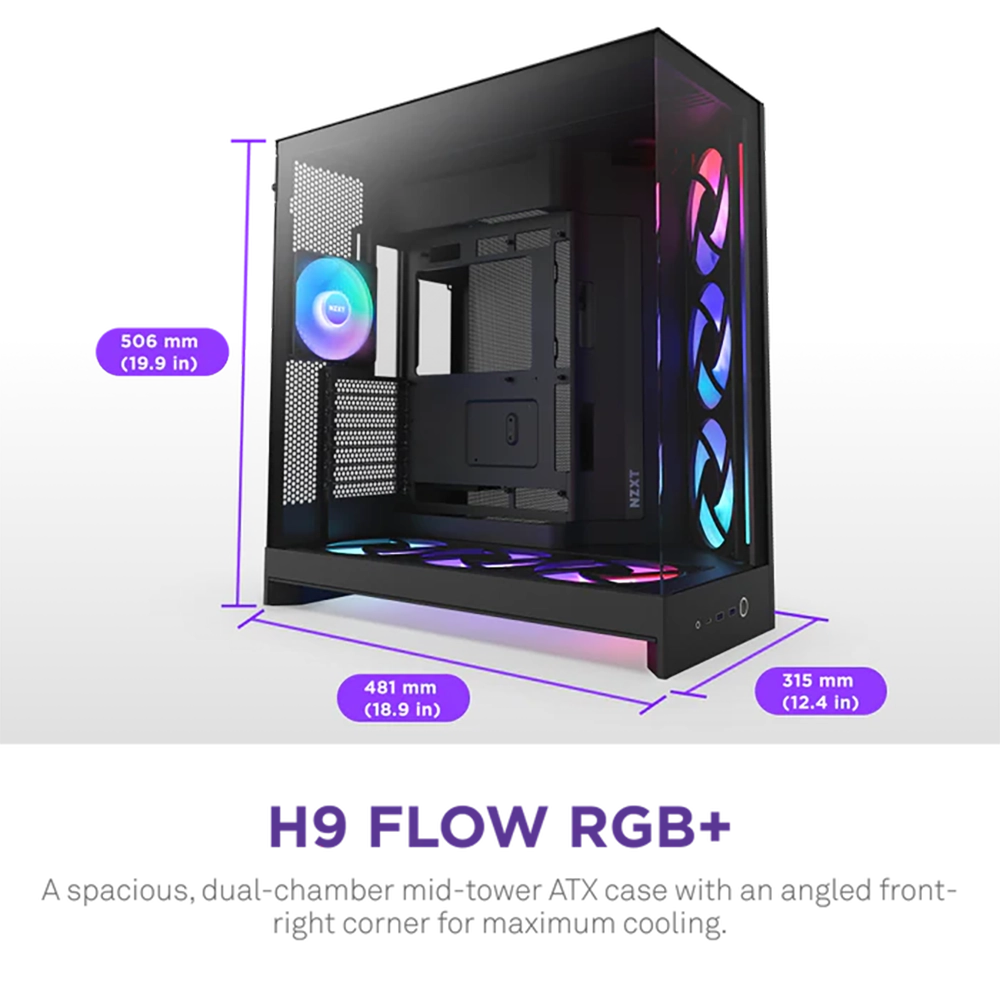 🖥️ NZXT H9 Flow RGB – Gabinete Mid-Tower ATX (CM-H92FB-P1)