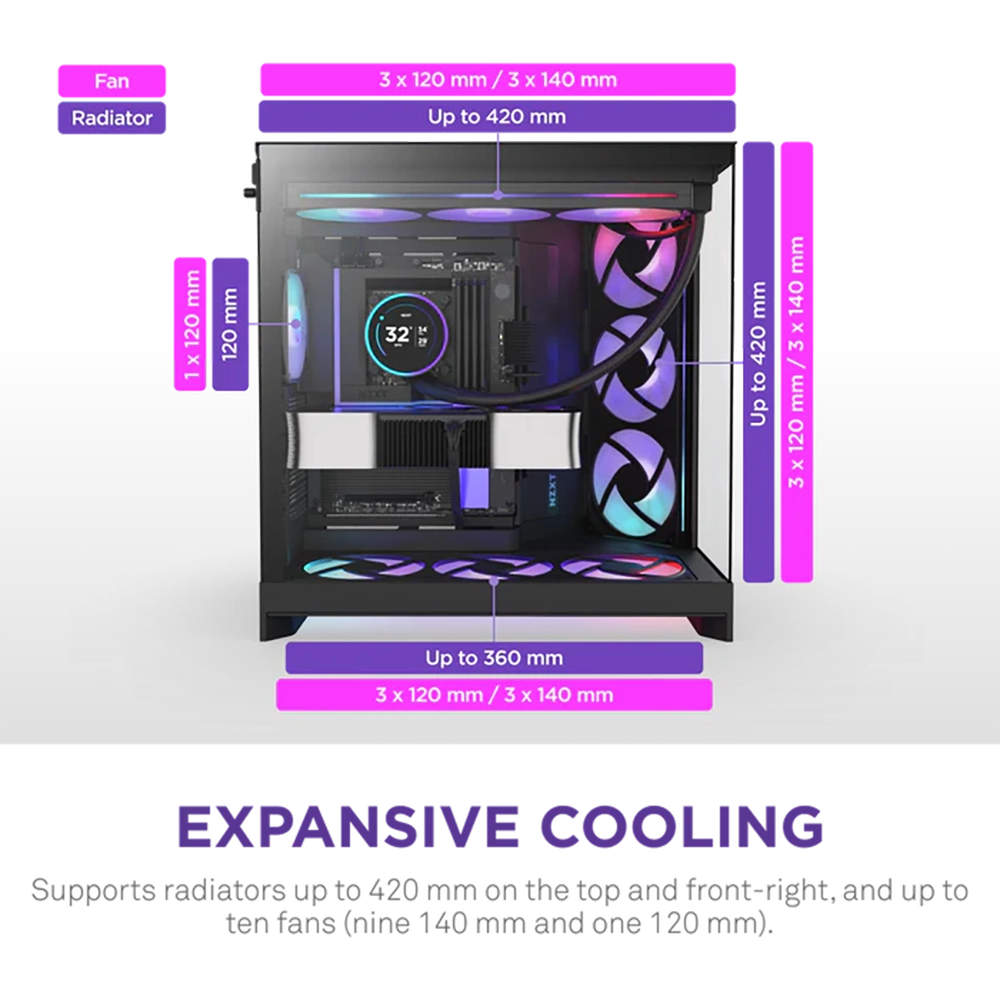 💦 Soporta refrigeración líquida AIO (radiadores hasta 420 mm).