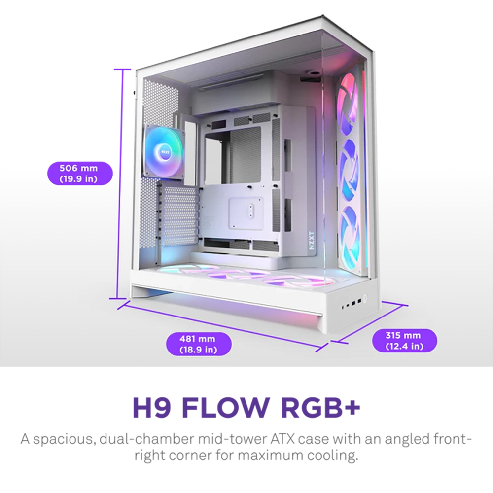 🧱 NZXT H9 Flow RGB ATX Mid‑Tower Case — Gabinete Mid-Tower airflow con diseño moderno y eficiente.