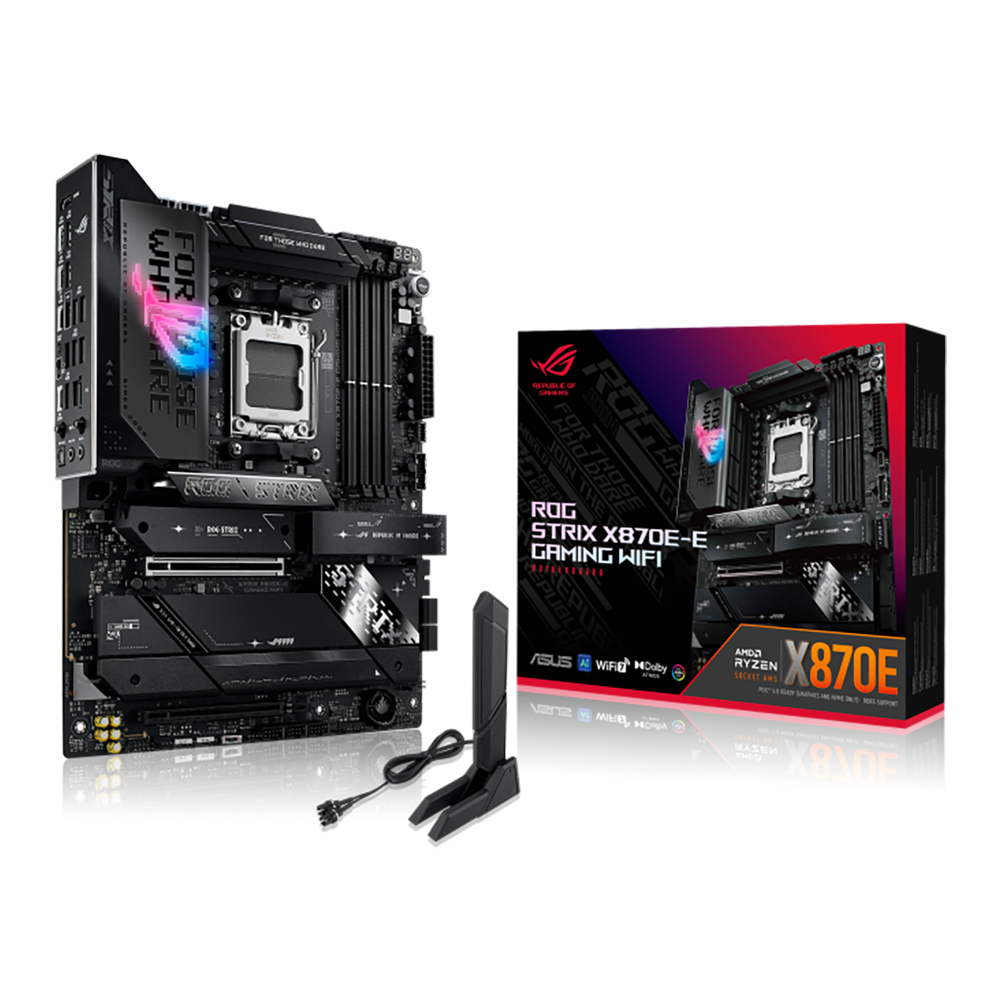 La ASUS ROG STRIX X870E-E GAMING WIFI es una tarjeta madre flagship dentro de la línea ROG STRIX, diseñada para exprimir al máximo procesadores Ryzen de última generación con un enfoque en rendimiento extremo, overclocking y conectividad avanzada.