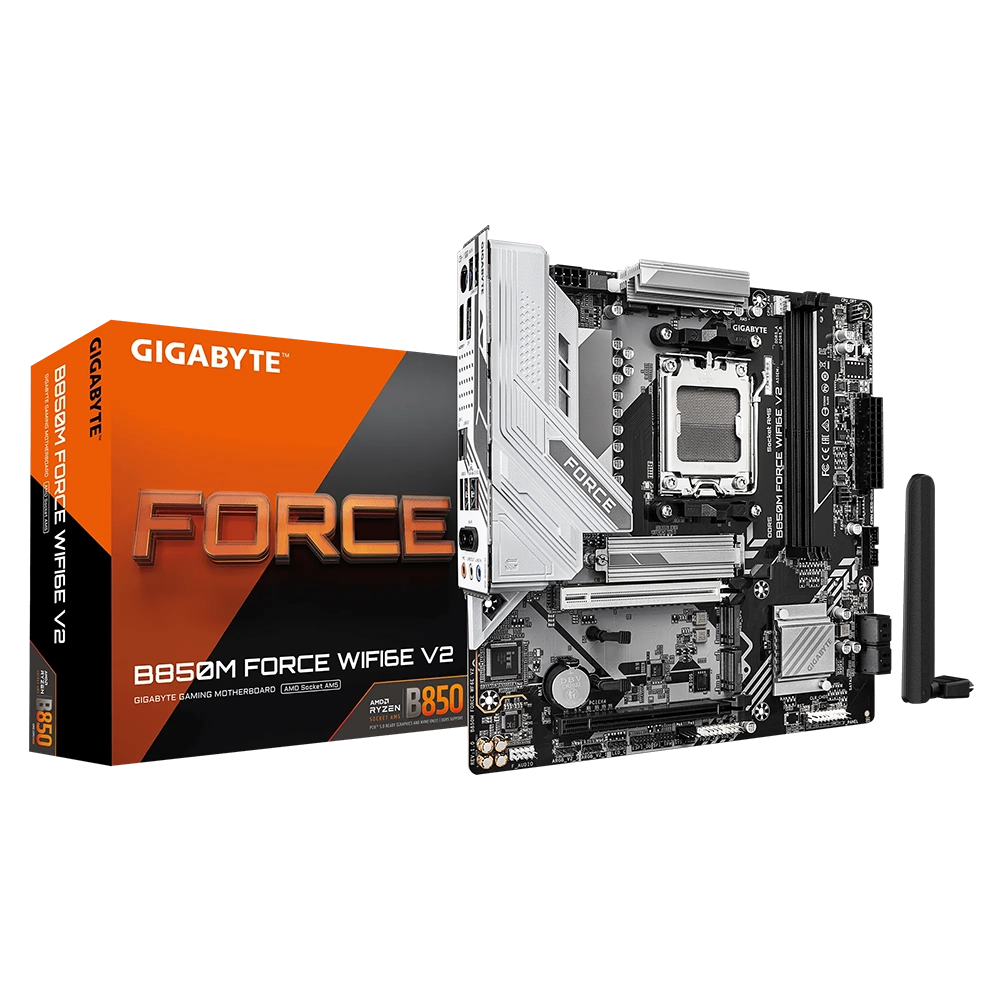 La Gigabyte B850M FORCE WIFI6E V2 es una placa base Micro-ATX moderna y orientada a futuro, diseñada para sistemas con procesadores AMD Ryzen de socket AM5. Está pensada para usuarios que buscan un equilibrio entre tamaño compacto, alto rendimiento y conectividad avanzada, ideal tanto para gaming como para productividad.