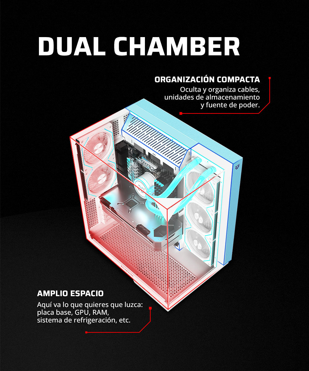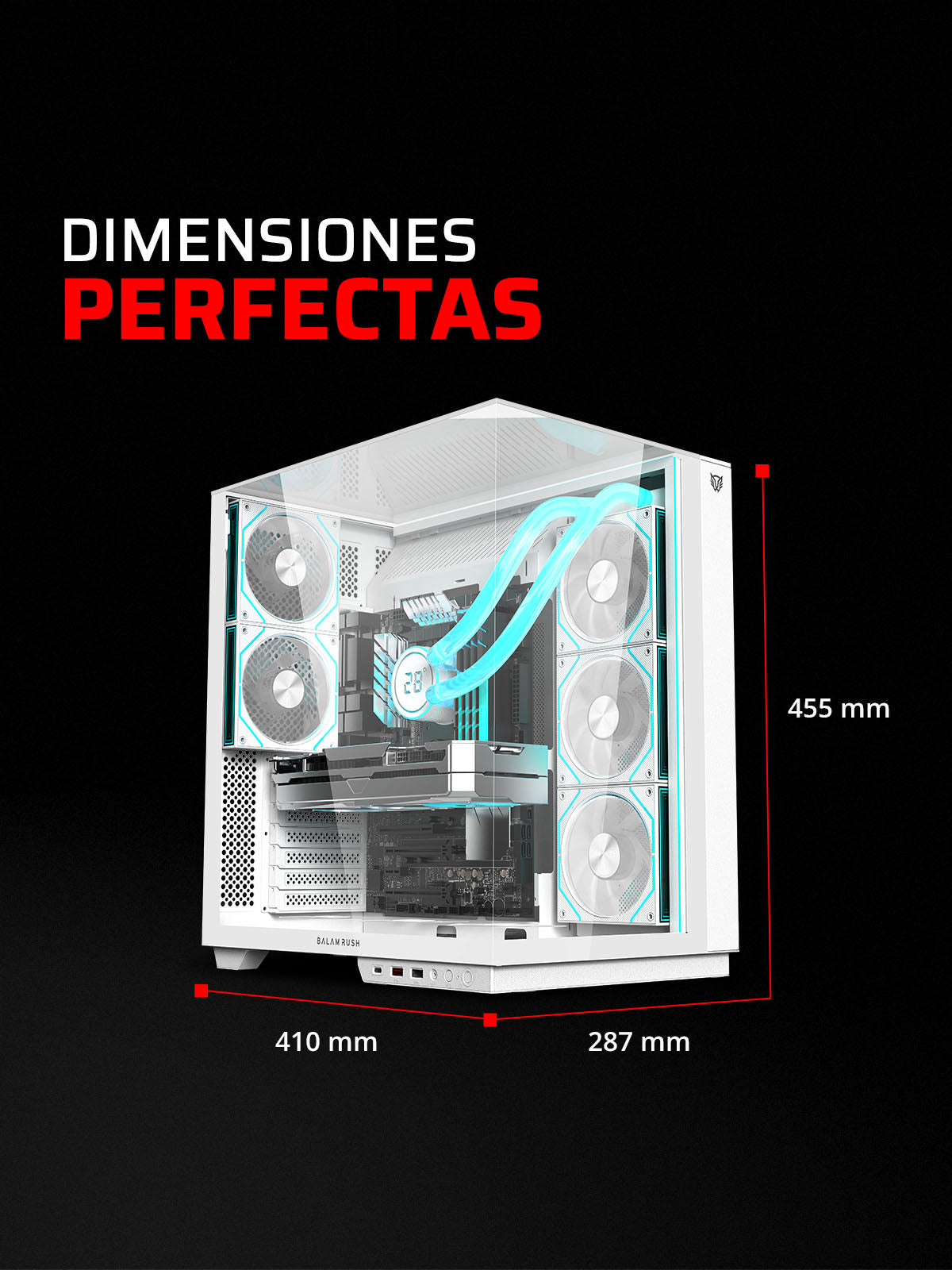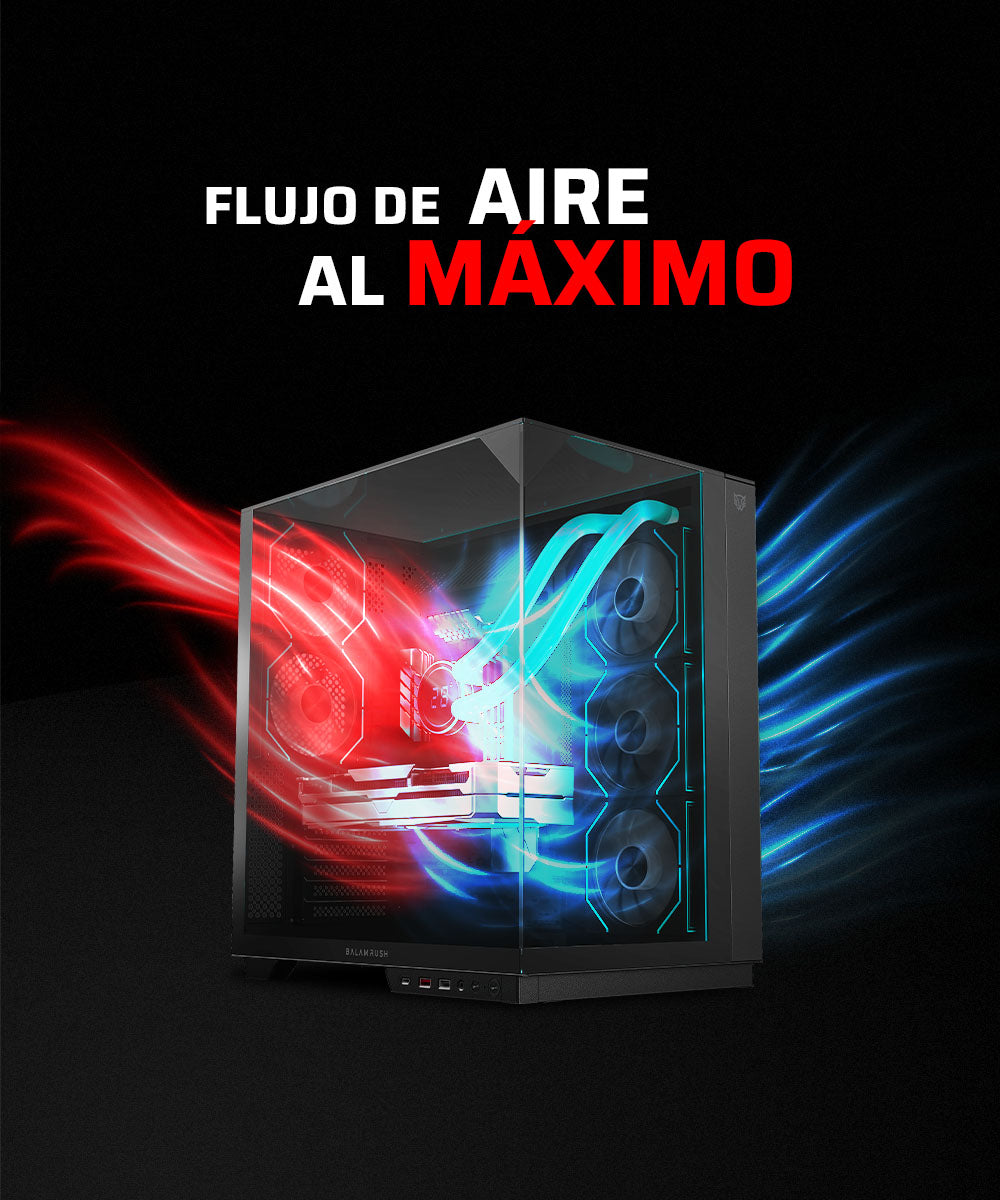 Enciende tu pasión gamer con nuestro gabinete de flujo de aire superior: disfruta de máximo rendimiento y bajas temperaturas. ¡Domina cada partida con estilo y frescura!